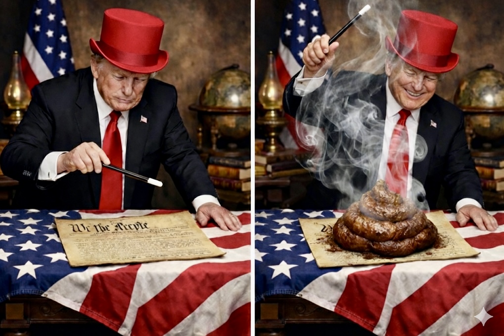 Trump is exactly like a black mirror. In him are reflected all the worst impulses of mankind. That dark triad of (malignant) narcissism, Machiavellianism, and psychopathy but with really bad skin and hair thrown in for the visuals. He’s a vulgar philistine, speaks at a 6th grade level and is utterly devoid of joy (unless you count joy in cruelty). He cares not a lick about theater or the arts, yet must slap his tired-ass name on the Kennedy Center, just to “own the libs.” Ha-ha! Stupid prick. All this as he opportunistically rides the coattails of Christianity while simultaneously shitting all over Christ’s message. He has been a pox on our body politic for ten long years now. Perhaps we have at last found a worthwhile human use for Ivermectin. Right up his fat and fascist ass!!