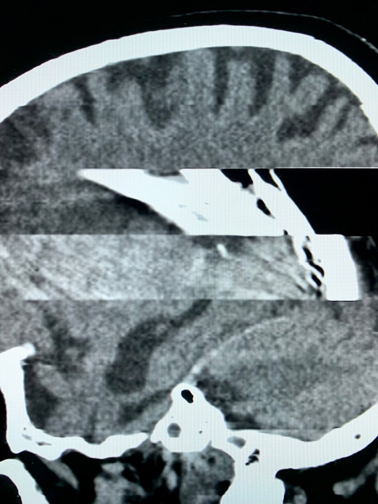 This image reminds me of some of the more stylized opening credit sequences from films and TV of the 60’s and 70’s. Band-like figures moving in different directions which then lock together as a coherent picture. The thrill of disorientation and movement all on a static screen. An entertainment equivalent of tri-colored shag carpeting (which we had in our den and my older sister and I both had in our respective attic bedrooms). It was a great idea at the time…