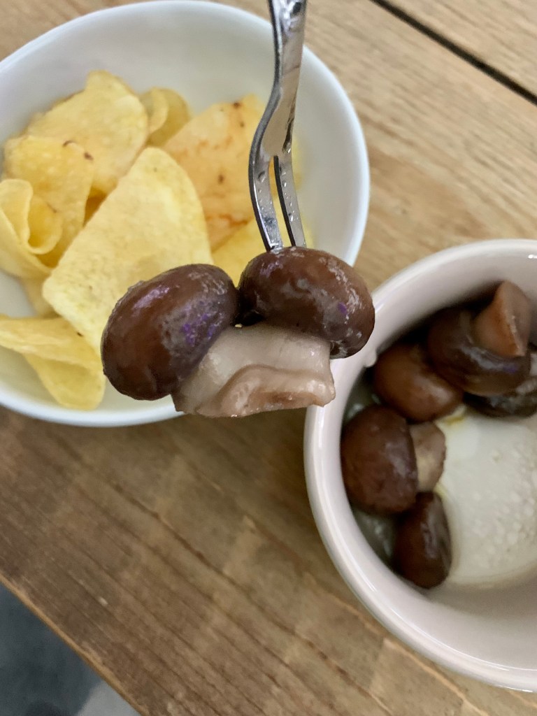 There’s a nice gift shop in Baltimore’s Harbor East called CURIOSITY where we have stumbled on terrific knickknacks and edible treats, including this tasty one! Perfect little tangy delectable for your pre-dinner wine/cocktail. Pair with chips or eat them straight out of the jar. [WARNING: this product can spoil your appetite due to overconsumption].