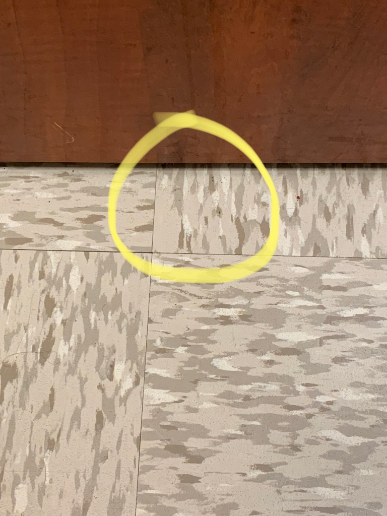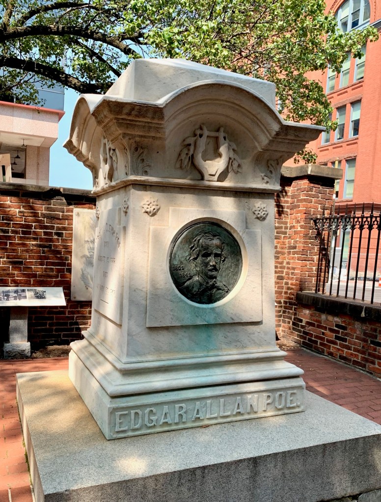 I was killing time in downtown Baltimore waiting for my appointment with an onboarding specialist, who was getting the last of my UMMS hospital credentials together. She was to escort me into the bowels of the ship to have my photo ID made. Until then, I wandered over to the Westminster Hall (formerly Presbyterian Church) and Cemetery where Edgar Allan Poe (1809-1849) and several of his family members are interred. His likeness was, therefore, fresh in my mind when I was waiting for my mugshot. And as I sat in the chair pondering things, his visage suddenly emerged from the tile floor (circled above)… and just then, from behind the wall, I began to hear a faint heartbeat… that steadily grew louder!