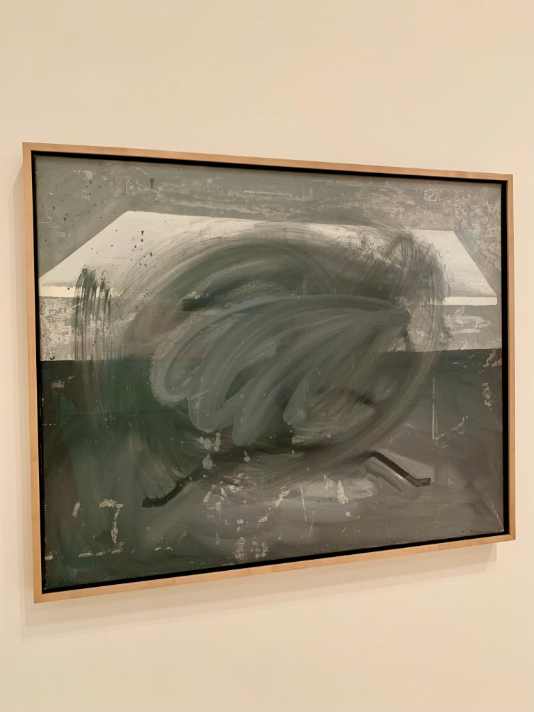 A patron, unknown to me, endeavors to find meaning in the semi-random world of Gerhard Richter.Photos taken at San Francisco Museum of Modern Art (SFMoMA) in November 2022.Gerhard Richter’s “Mirror, Blood Red” (1991). I had moved on to the next wall while our friend was still trying to sort out the 256 colors, in a posture we might call “museum kyphosis” (a prefrontal cognitive-motor variant of the more limbic-autonomic Stendhal Syndrome).“Portrait Müller” (1965). I am tentatively calling this style “photo-surrealism,” though that might not fit. How about “failing ink-jet printer”??I have given this one the alt-title of “Oh, FUCK it!!”And who hasn’t been there?!“Forest 4” (1990) in perhaps his most instantly recognizable “smear” style.