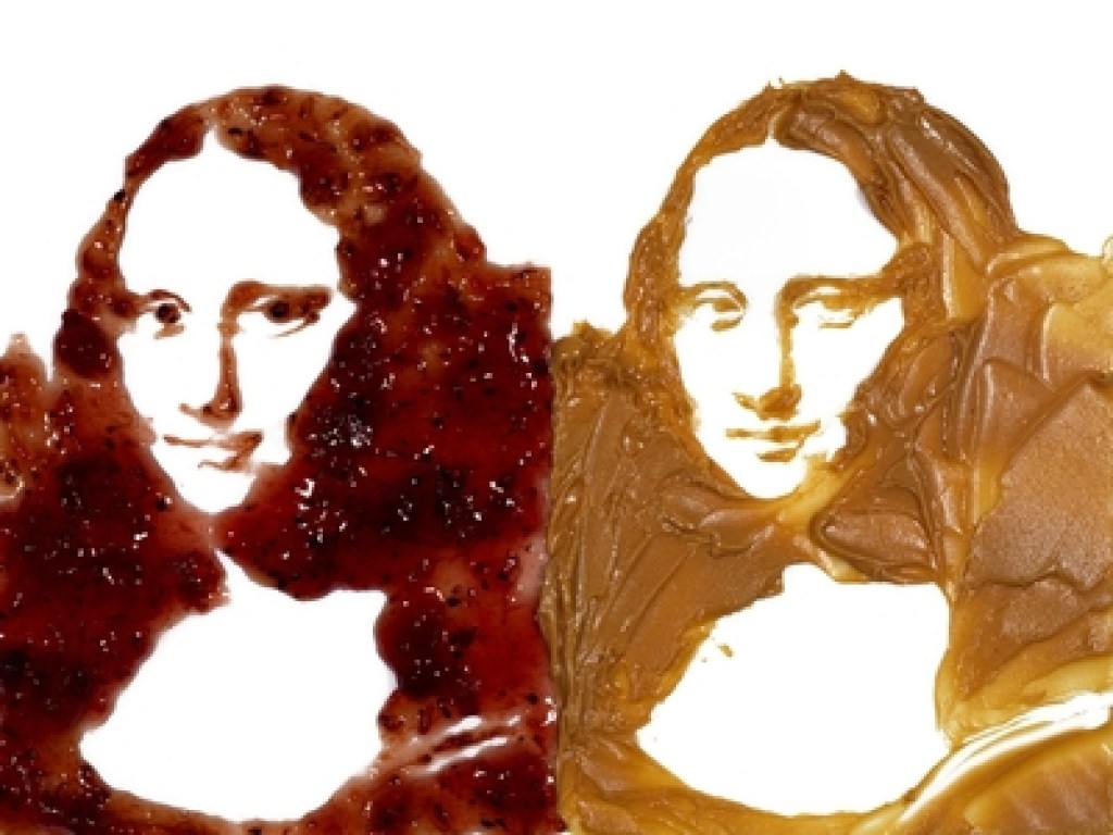 Marcel Duchamp’s iconoclastic take on da Vinci’s “Mona Lisa”Andy Warhol doubles down on da Vinci.Vik Muniz does his double-take in PB&J.The Ceramic Duo try their best to ruin the masterpiece.