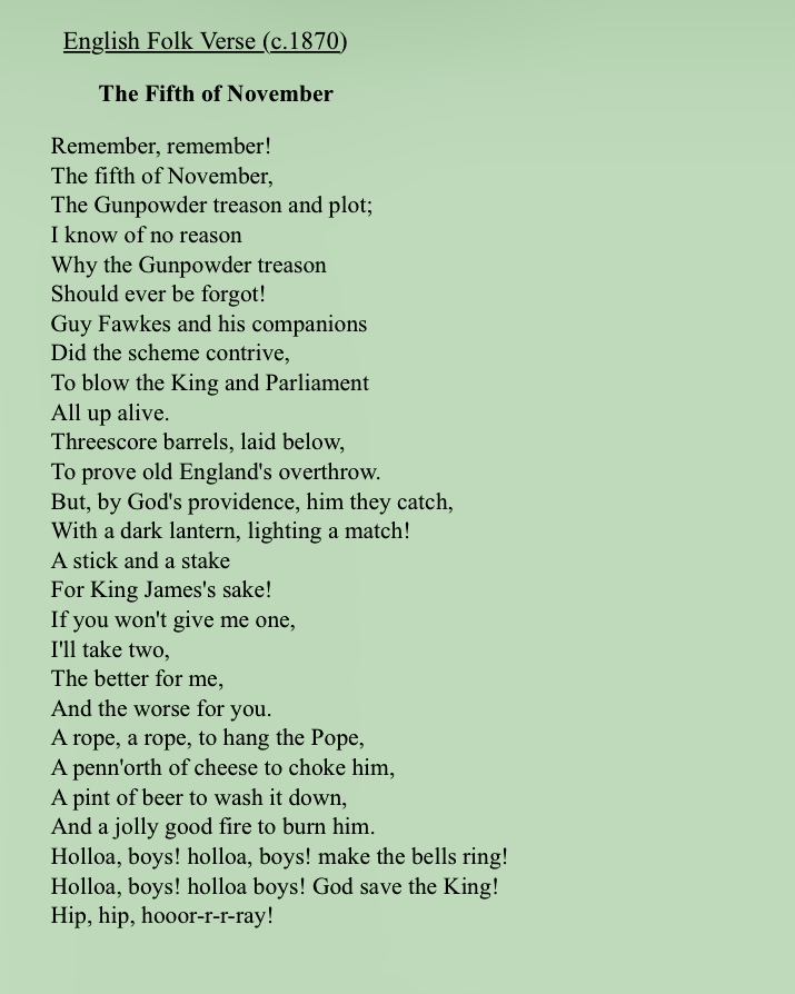 “The Sixth of January” (modeled on the English folk poem “The Fifth of November” that commemorates Guy Fawkes’ so-called “Gunpowder Treason” on Nov 5, 1605)