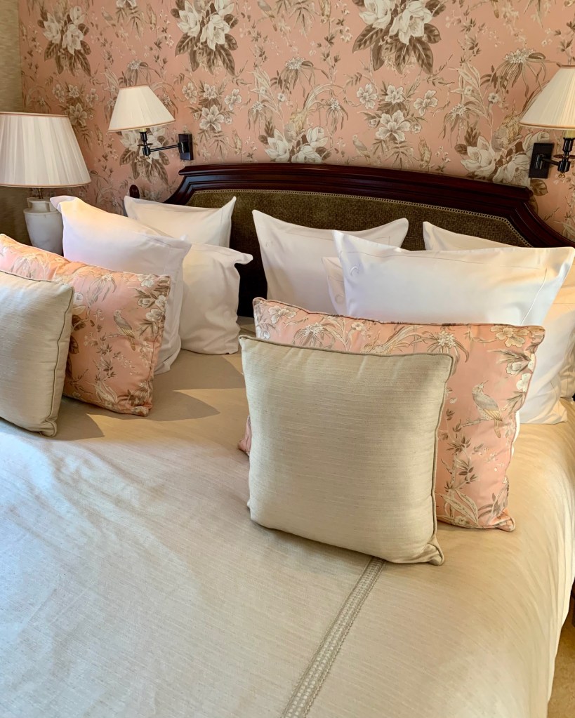A boutique hotel in France presents its phalanx of pillows in echelon (Rheims, Sept 2024).We had to sleep on the floor.