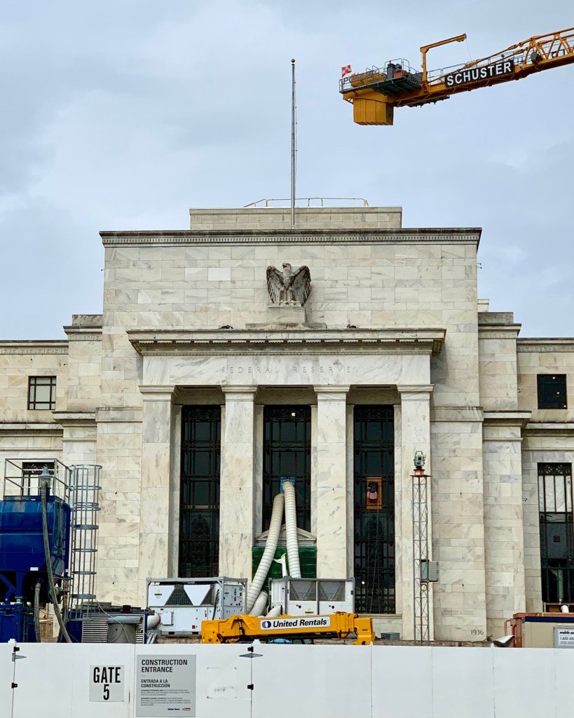 The facade of the Federal Reserve Building on Constitution Ave in Washington, DC (from Jan 2024). It’s unclear whether Wall St.’s money-suction apparatus is being dismantled or simply upgraded. I would predict the latter.Goldman’s large bore money ducts set to continuous low-gomco suction.