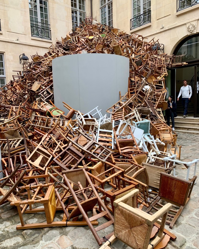 Was this a protest over poor ergonomics and uncomfortable seating? A statement about seat diversity or the lack thereof? Are these physical chairs “stand-ins” for department chairs in academia?? To answer these and other questions, I will refer you to the artist responsible for this 2024 Paris installation called “AVALANCHE,” Tadashi Kawamata.“Liberty Leading the People” (1830) by Eugene Delacroix commemorates the July Revolution of 1830 that toppled King Charles X.The chairs! The chairs! They’re EVERYWHERE!!”
